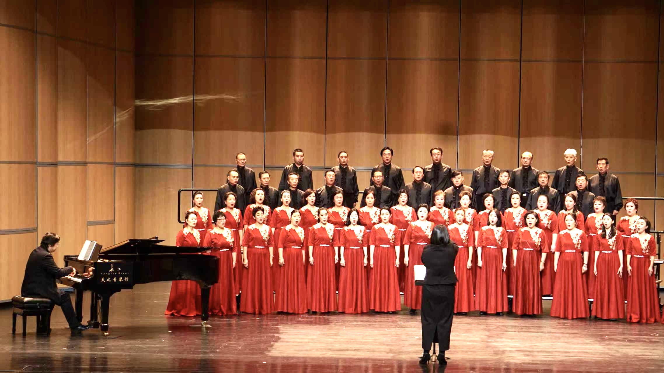 晚会以歌曲《我最亲爱的祖国》深情婉转的旋律拉开帷幕,在合唱团员们多声部的齐声共振和密切协作下,现场观众一会儿被带入到广袤无垠的草原,一会儿仿佛置身在塞外江南,一会儿又站上了万吨巨轮,乘风远航。《在那草地上》《江南好风光》《北大荒人的歌》……全景式展现祖国各地的人文风貌,勾勒出华夏神州的壮阔图景,《龙的传人》《我们走在大路上》《爱永在》……一首首气势磅礴、恢弘大气的歌曲让人心潮澎湃,让观众们心中充满对党、对祖国的崇敬之情,增强了民族自豪感和自信心,也增强了文化自信。最后,演出在全场齐唱《歌唱祖国》嘹亮的歌声中落下帷幕。