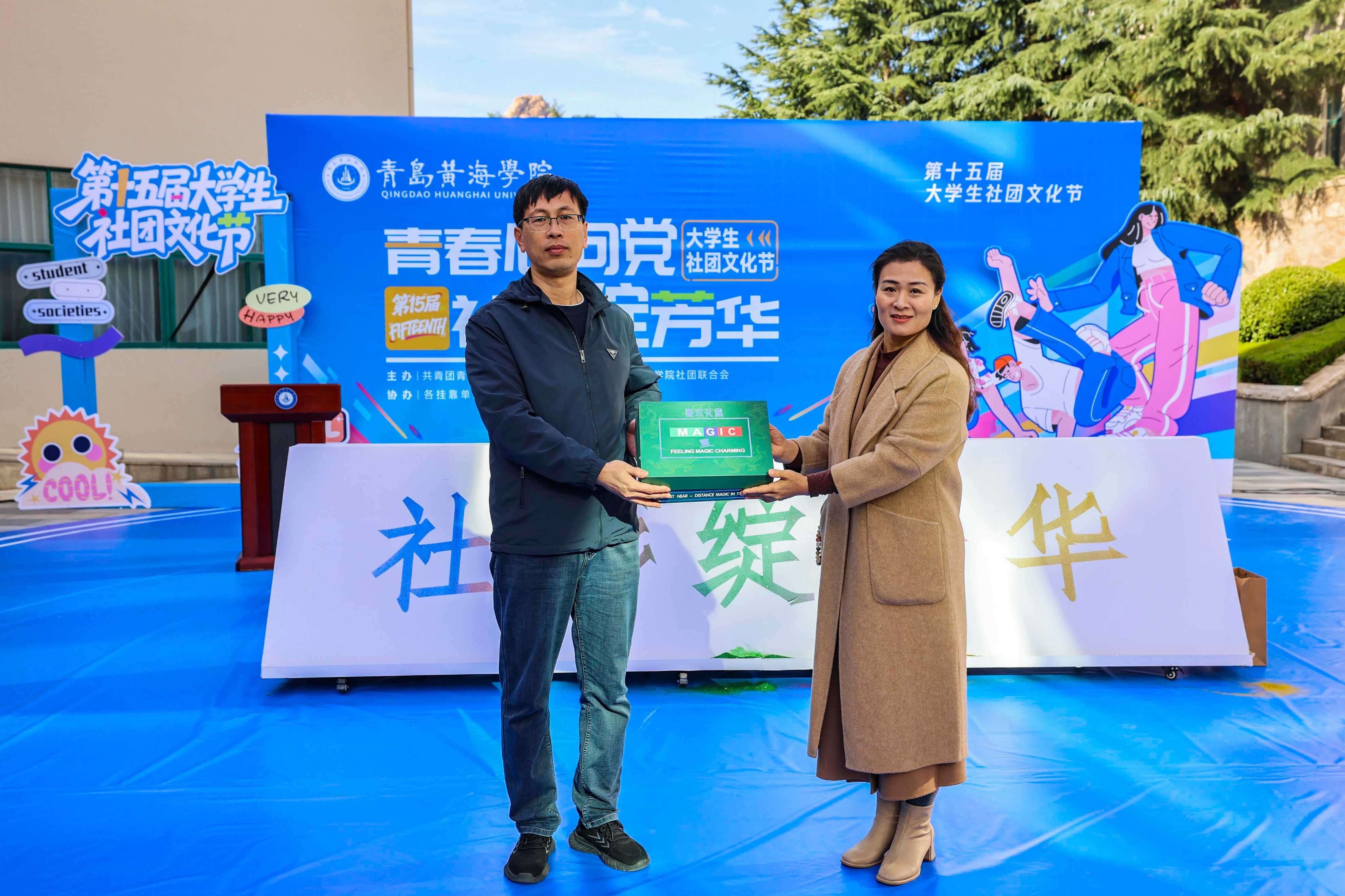 而在青岛理工大学,青岛市文艺志愿者协会主席、青岛市杂协名誉主席孙永芬也将同款礼盒赠予该校魔术社团,她鼓励社团成员:“要敢创新、敢突破,把年轻人的想法融入传统魔术,让魔术艺术洋溢在校园里。”